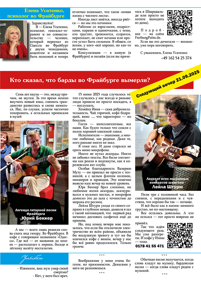 Размещение в газете возможно только для участников сайта FreiburgPoint.de.