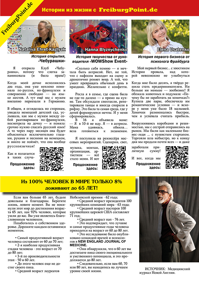 Газета FreiburgPoint — это полноцветное печатное издание, выходящее тиражом 1000 экземпляров и распространяемое по самым актуальным точкам Фрайбурга и региона.