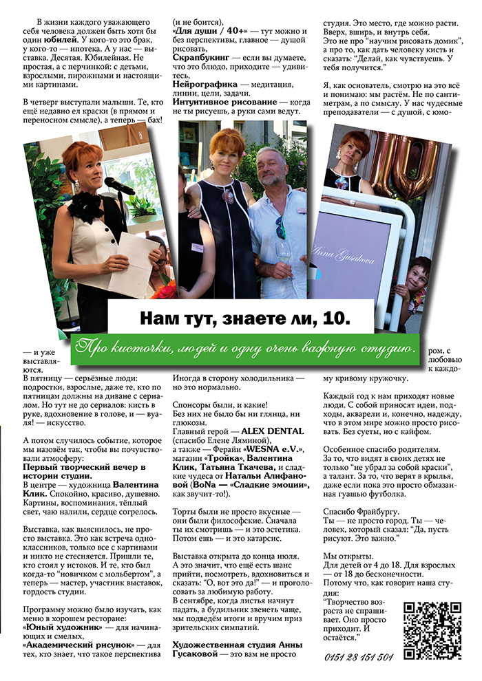 Маркетинг фирмы «Художественная студия Анны Гусаковой» во Фрайбурге, с 2012 по 2025 гг.